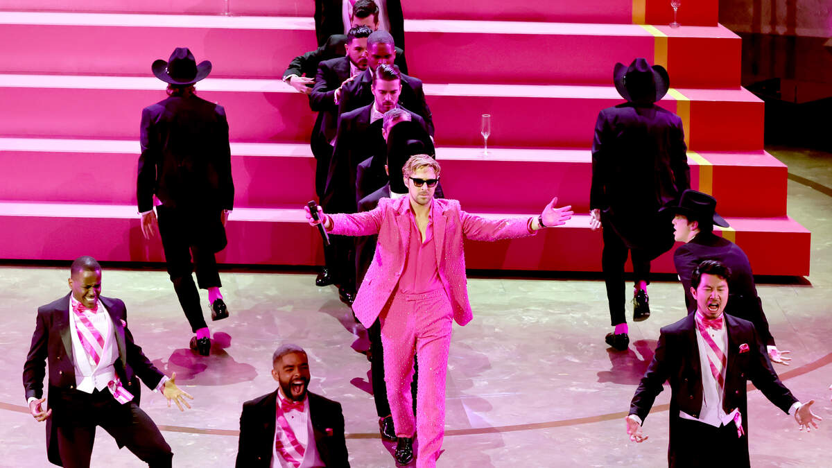 "Barbie" has been getting its clock cleaned by "Oppenheimer" this award season, but Ryan Gosling's "I'm Just Ken" may have been THE highlight of the show.